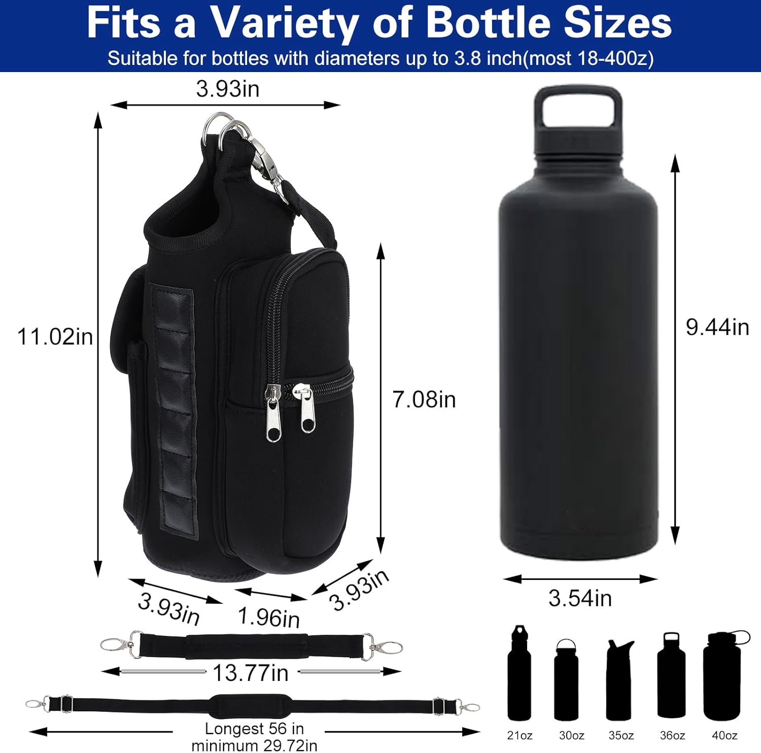 Ajuste universal: compatible con la mayoría de las botellas estándar (de 18 oz a 40 oz). Fabricado en neopreno suave, ligero y duradero, que brinda protección y comodidad.