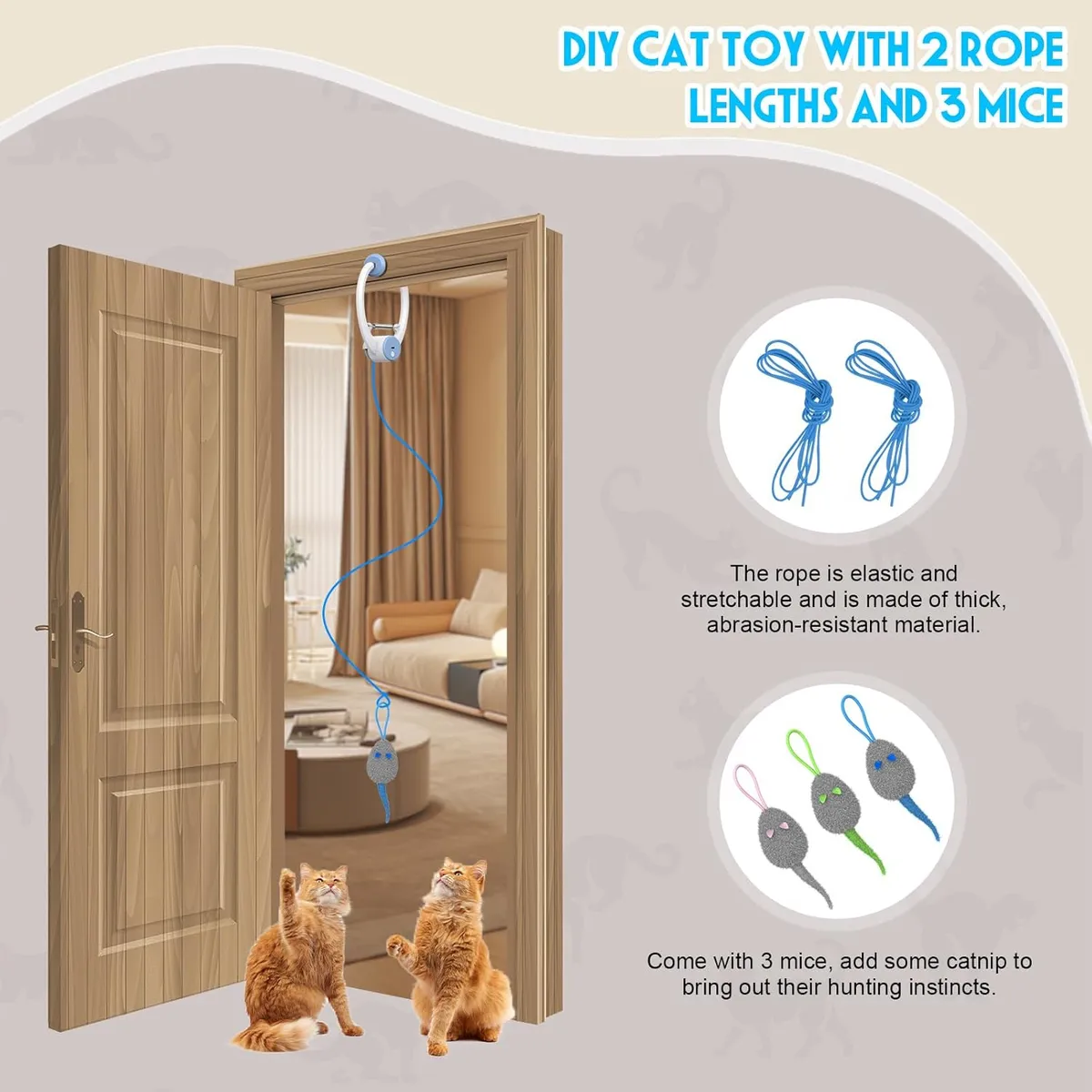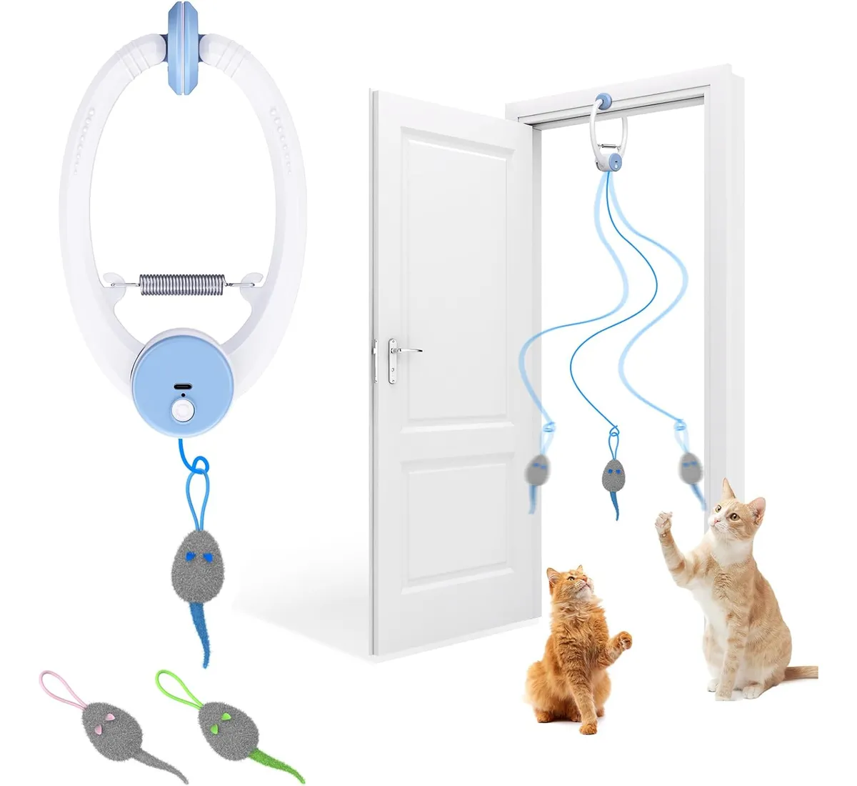 Mantén a tu gato activo y entretenido incluso cuando no estás en casa. Este juguete se cuelga fácilmente en puertas y genera movimientos automáticos que estimulan el instinto de caza de tu mascota.