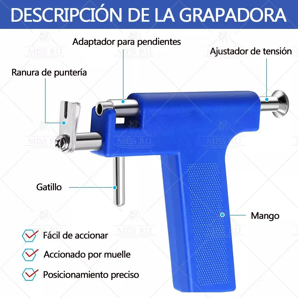 Realiza perforaciones de orejas de forma práctica y segura. Este set incluye todo lo necesario para lograr un resultado preciso e higiénico, ideal tanto para uso personal como profesional.