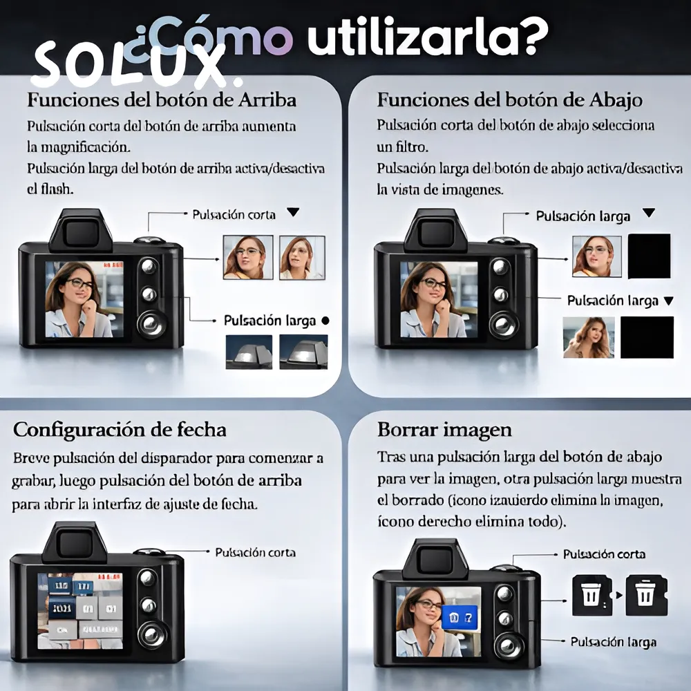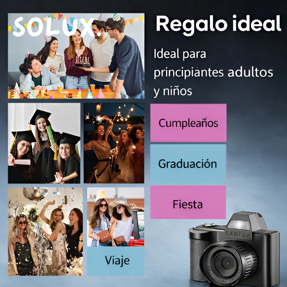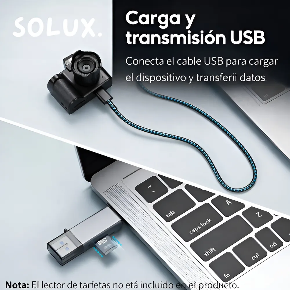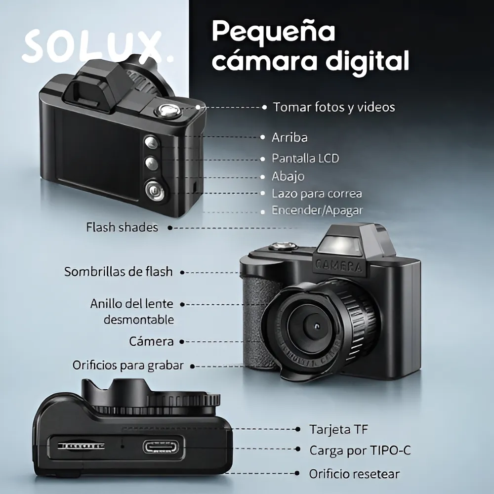 Esta mini cámara digital destaca por su diseño compacto y portátil, ideal para llevarla contigo como accesorio en llaves, mochila o bolso. Su formato pequeño y ligero la convierte en una opción práctica y divertida para capturar fotos y videos en cualquier momento, sin necesidad de equipos grandes.