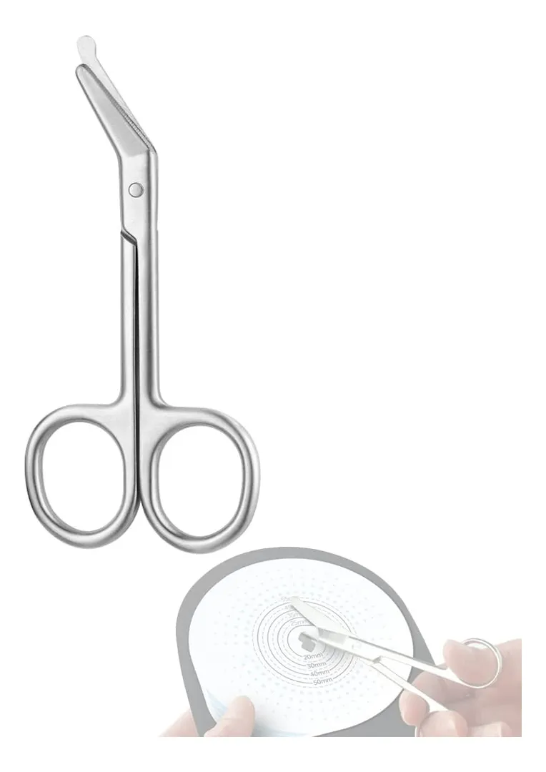 Herramienta especializada diseñada para el cuidado y mantenimiento de bolsas de ostomía, ideal para un uso preciso, seguro y cómodo. Esta tijera permite recortar la abertura de la bolsa de estoma de forma exacta, adaptándola a las necesidades del usuario y ayudando a mejorar el ajuste y la comodidad.