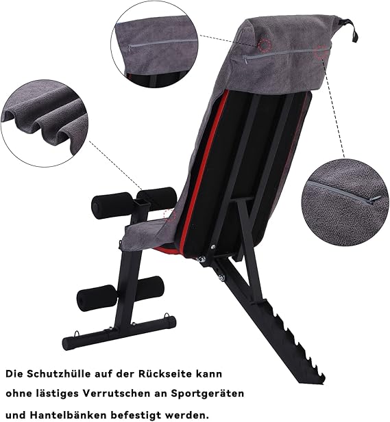 Incorpora una funda protectora en la parte posterior que permite fijarla a bancos de pesas y equipos de gimnasio, evitando deslizamientos durante el uso.